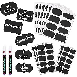 96 Premium Chalkboard Labels Bulk - Free Erasable Chalk Pen - Dishwasher Safe Chalk Board Mason Jar Labels - Removable Waterproof Blackboard Sticker ...